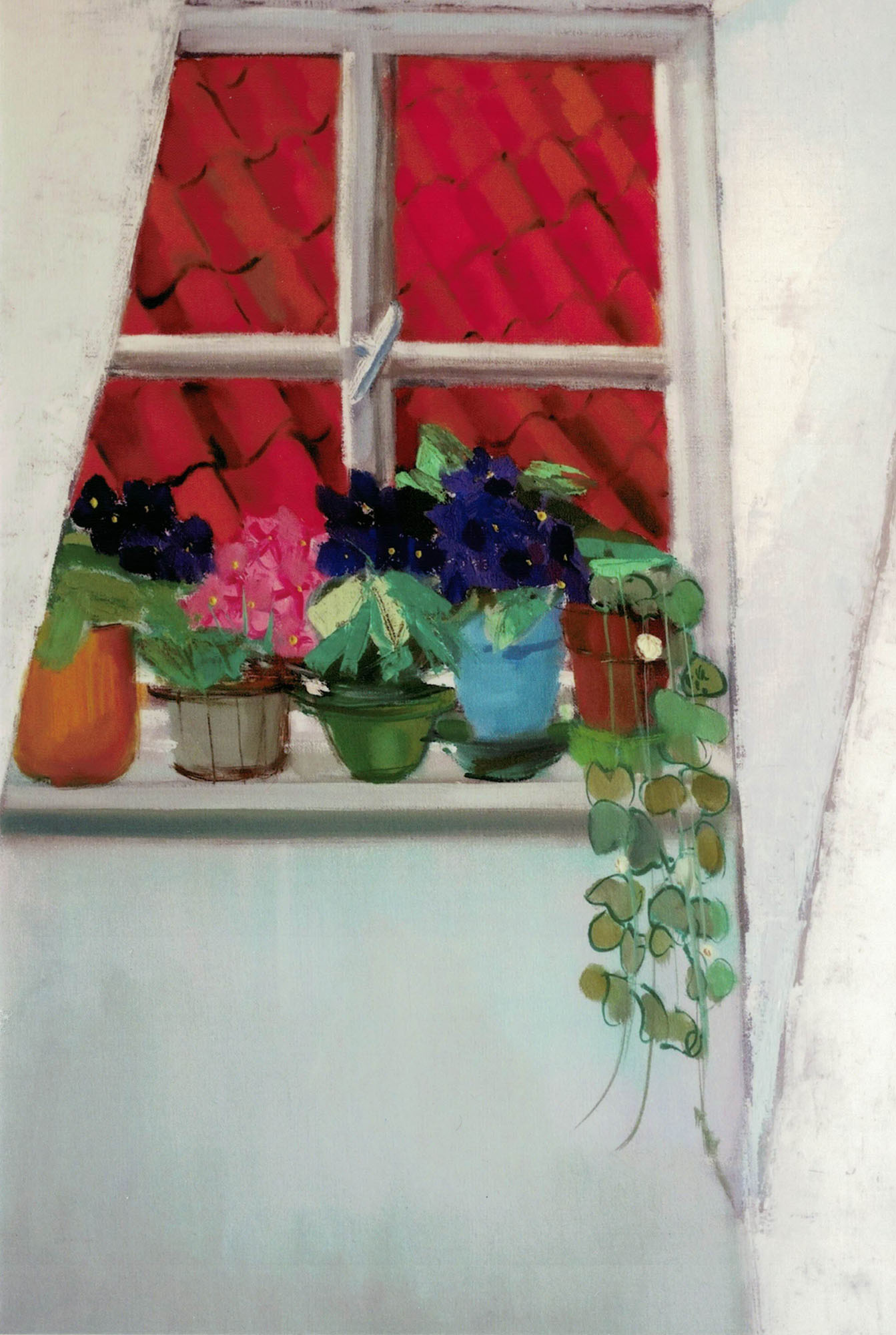 Dakraam met planten - Acryl, Diversen 1980 (60 x 50 cm)