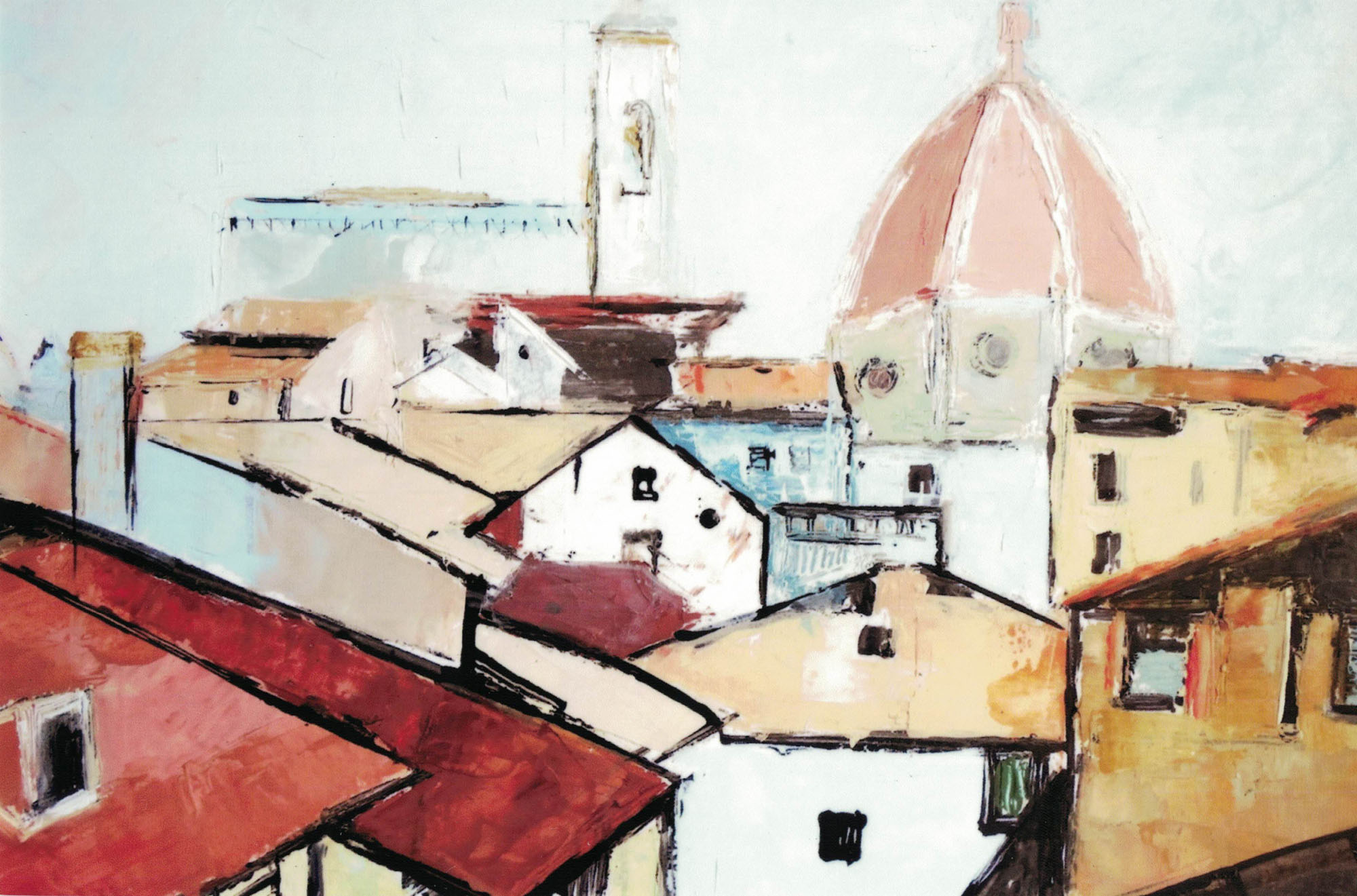Toren Florence - Acryl, Reizen 1985 (60 x 50 cm)