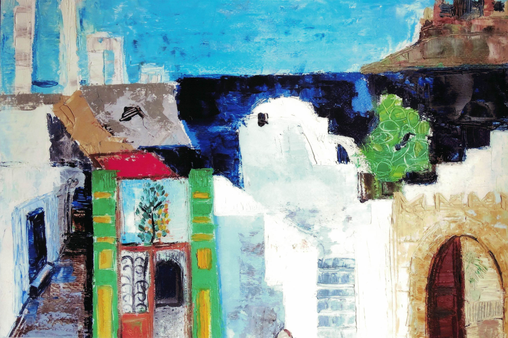 Moorse stad - Textiel/Batik, Reizen 1979 (60 x 70 cm)