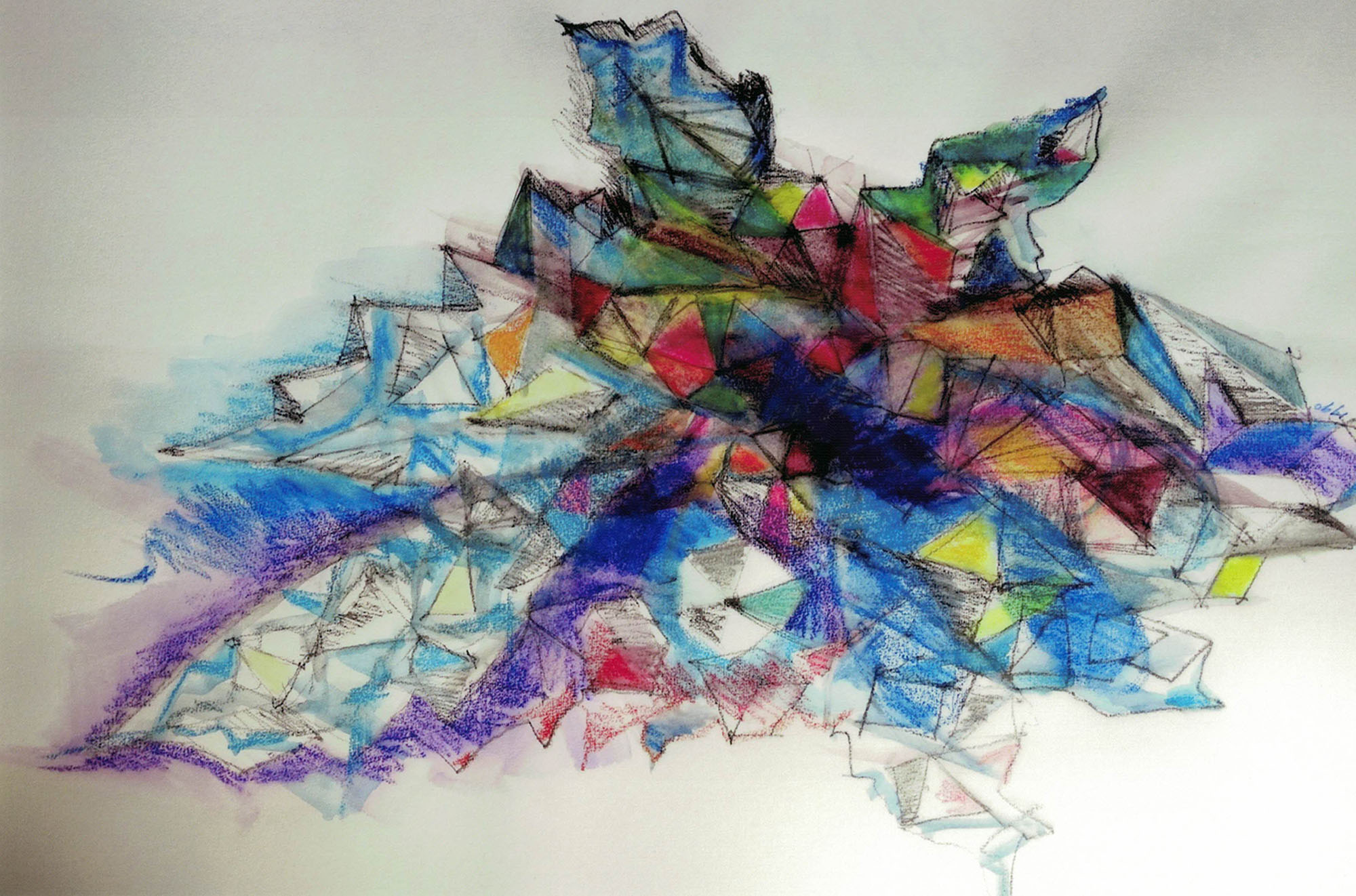 Out of the blue - Tekening, Abstract 1992 (65 x 50 cm)