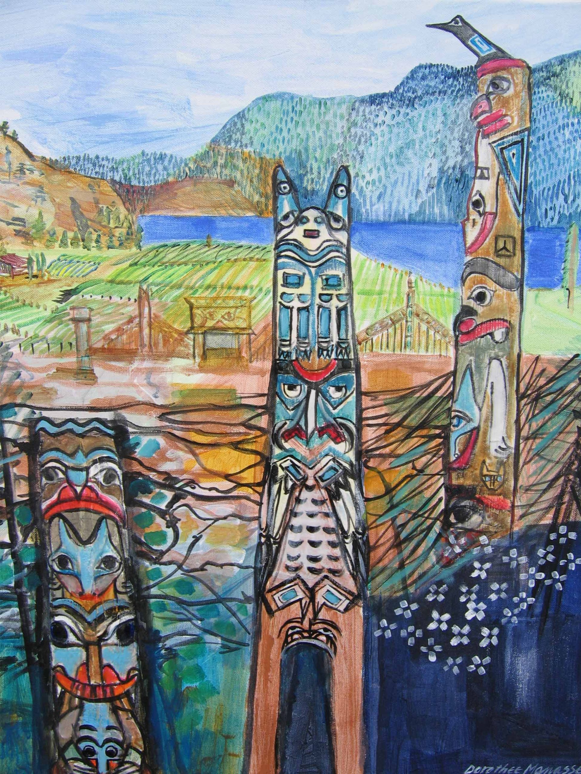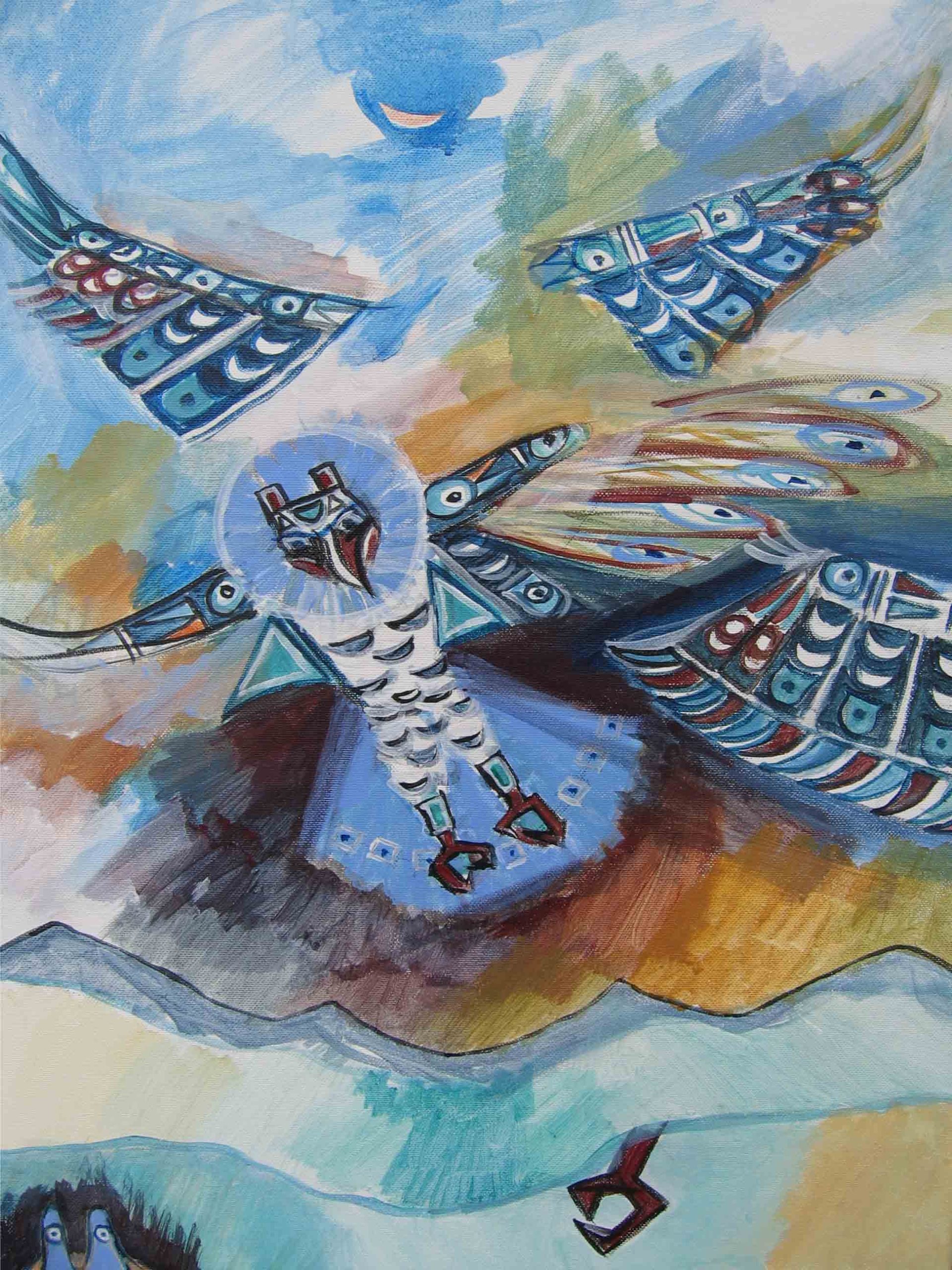 Totempalen - Tekening, reizen 2002 (60 x 50 cm)