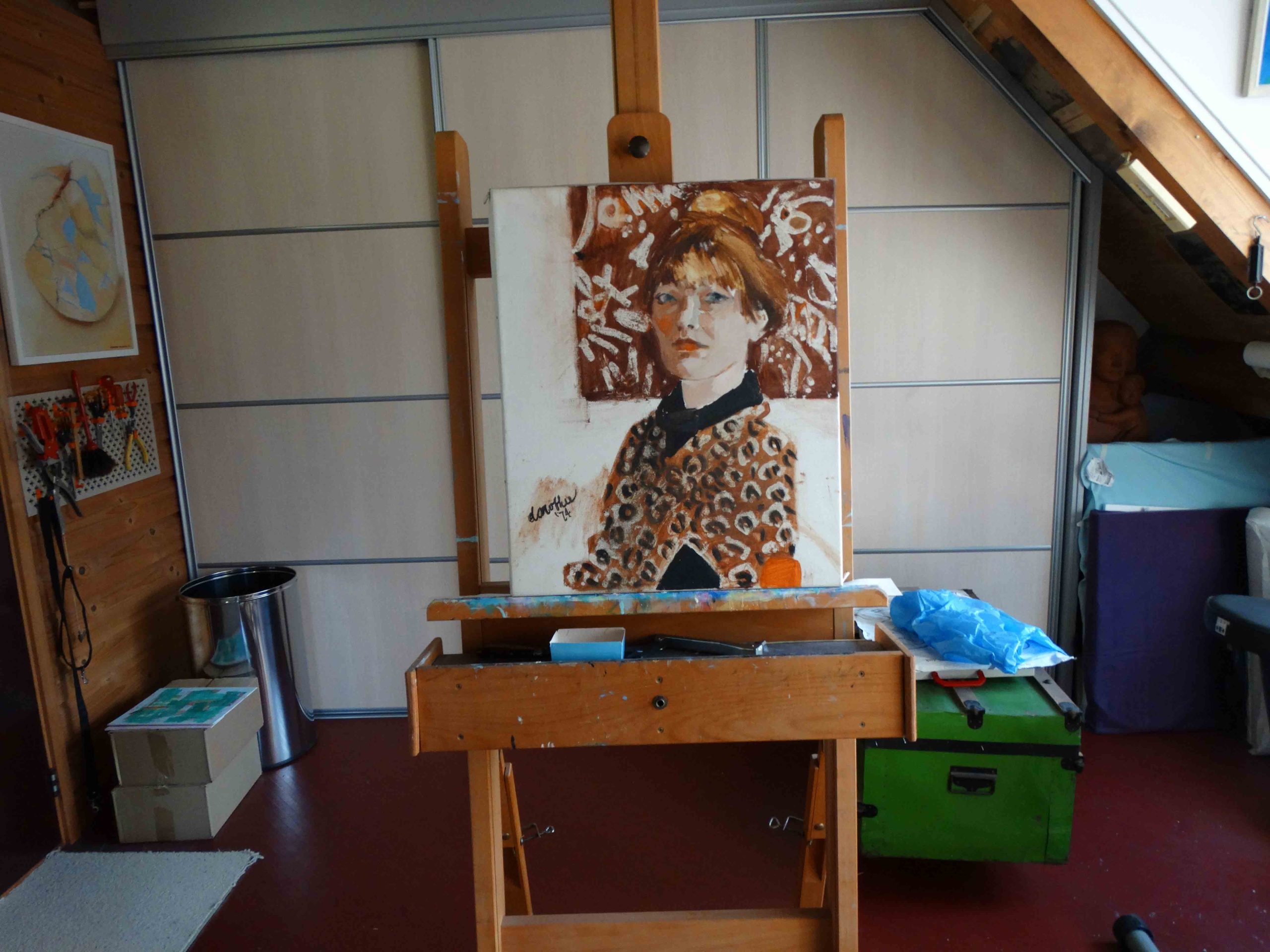 Atelier met zelfportret - Olieverf, diversen 1974 (90 x 60 cm)